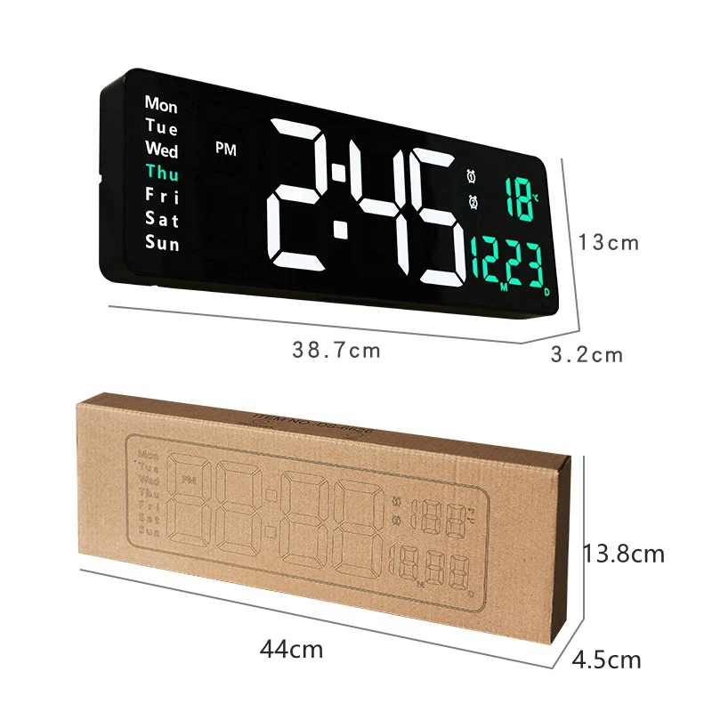 16 Inches Large Digital Wall Clock Wall Mounted Remote Control Temperature Date Week Display Dual Alarms LED Alarm Clocks