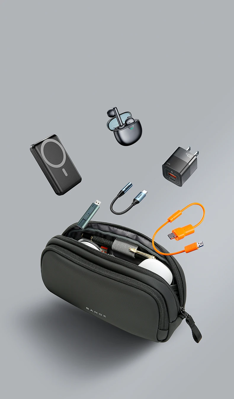 BANGE New Unisex Polyester Light Waterproof Digital USB Cable Storage Hand Bag, Electronics Travel Bag Organizer for Cable Case