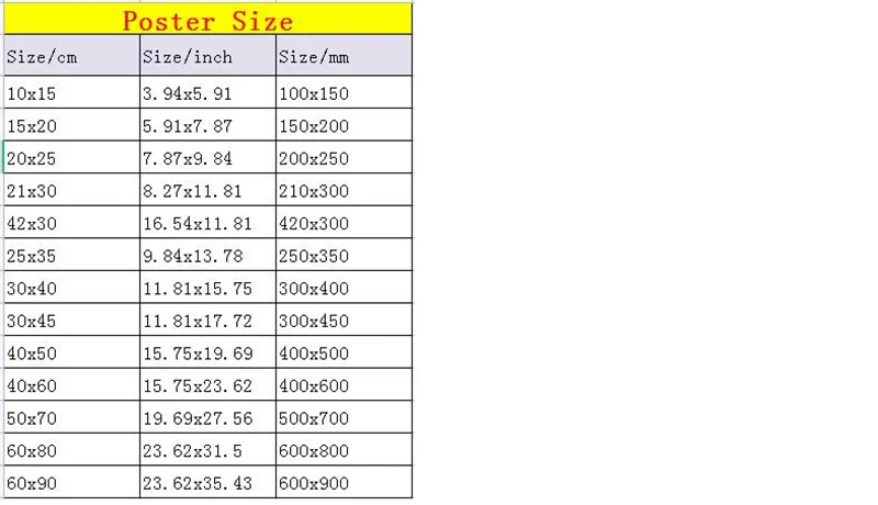 😈 Specifications: Size 1:10cmx15cm/15cmx20cm/20cmx25cm/21cmx30cm Size 2:42cmx30cm/25cmx35cm/30cmx40cm/30cmx45cm Size 3:40cmx50cm/40cmx60cm/50cmx70cm/60cmx80cm/60cmx90cm Material: PP synthesized paper Color: As show Features:HD quality/Adhesive/Waterproof/Dustproof Packing list: 1